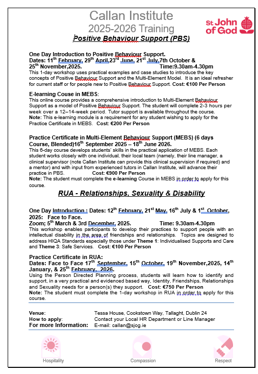 - Disability CPD modules: MEBS and 'Identity, Sexuality, Mortality and Trauma' in UCD Summer 2024